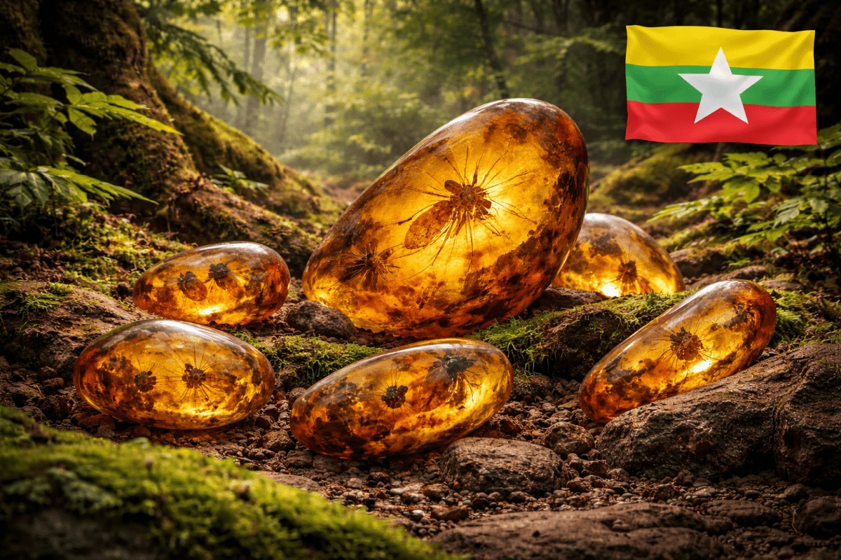 Burmite amber is a type of fossilized resin. Commonly known as amber which comes from northern Myanmar, specifically the Hukawng Valley. It was formed around 99 million years ago, during the Cretaceous period, when dinosaurs still roamed the Earth.