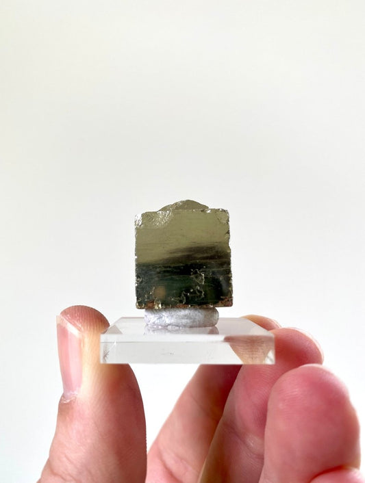 Small Pyrite cube (27 Grams) on acrylic plate - Navajun, Spain