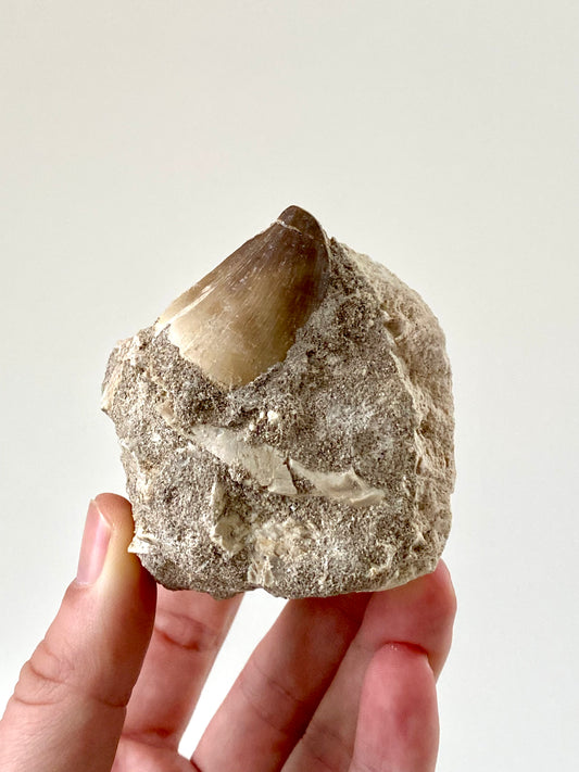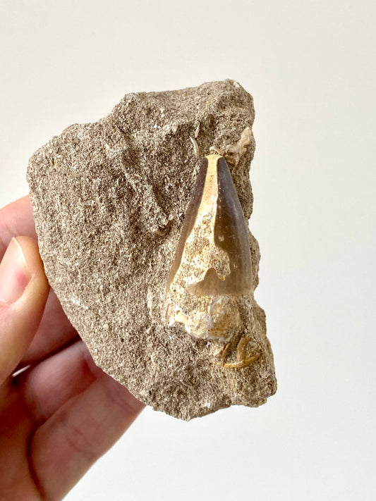 Mosasaurus fossil tooth (1.70") on Matrix - Cretaceous, Morocco