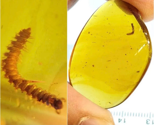 Rare Milipede species insect in a big piece of Burmese Amber, genuine fossil resin