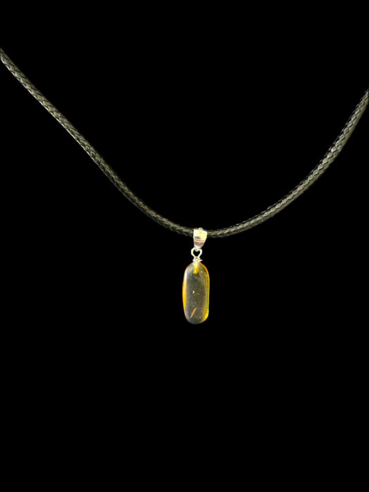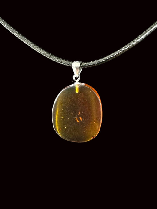The pendents are from fossilized tree resin also known as amber, originating mainly from Myanmar (formerly Burma) and the Baltic sea region. It is renowned for its rich fossil content, preserving a wide range of ancient organisms, including insects, plants, and sometimes even small vertebrates. The amber itself .
