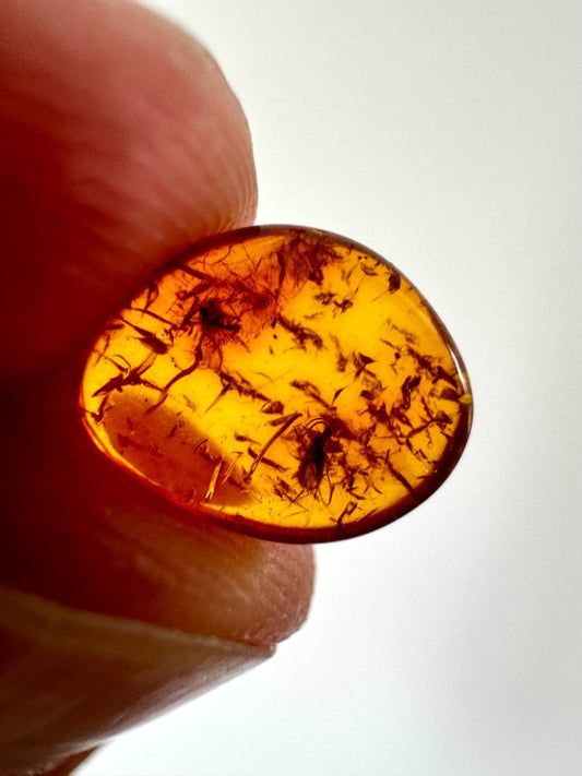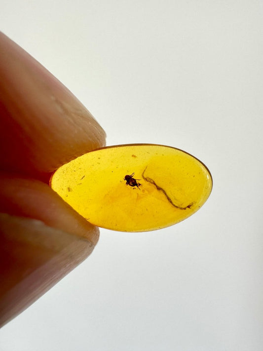 Our Baltic amber collection features clear and inclusion-rich pieces containing insects and spiders. Each specimen is unique, offering a captivating glimpse into the ecology of the prehistoric Baltic forests.