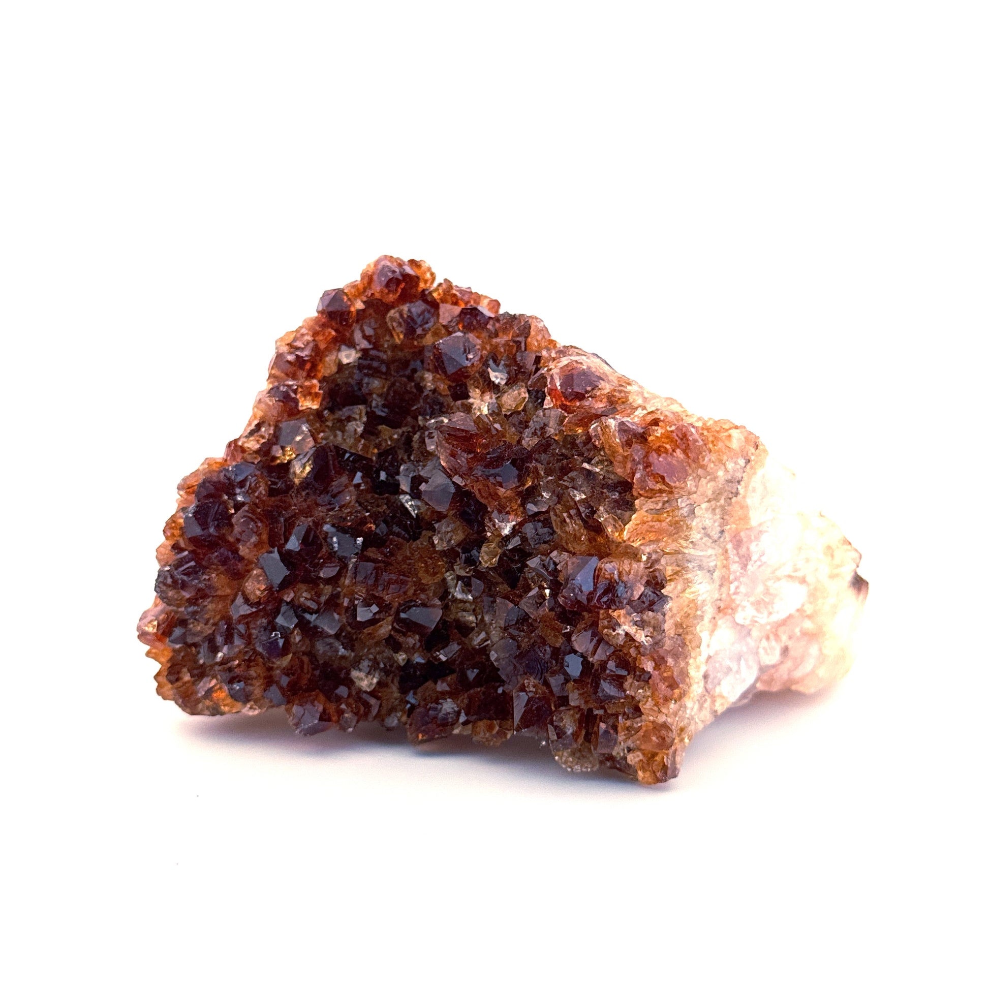 Heat treatment is a common and widely accepted enhancement within the mineral trade and does not affect the structural integrity of the crystal. The specimen is in good condition with defined crystal faces and natural surface features. Full disclosure: this is heat-treated amethyst, not natural citrine. The specimen shown is the exact item you will receive.